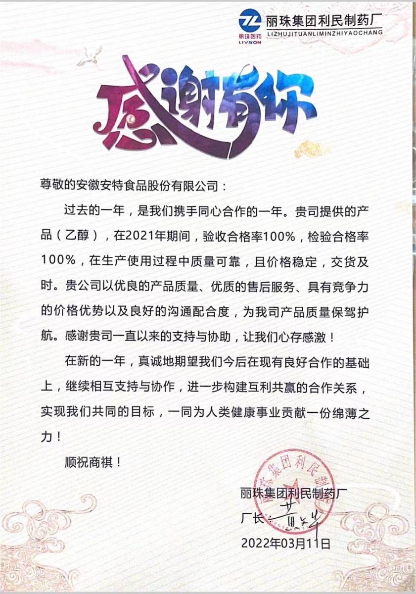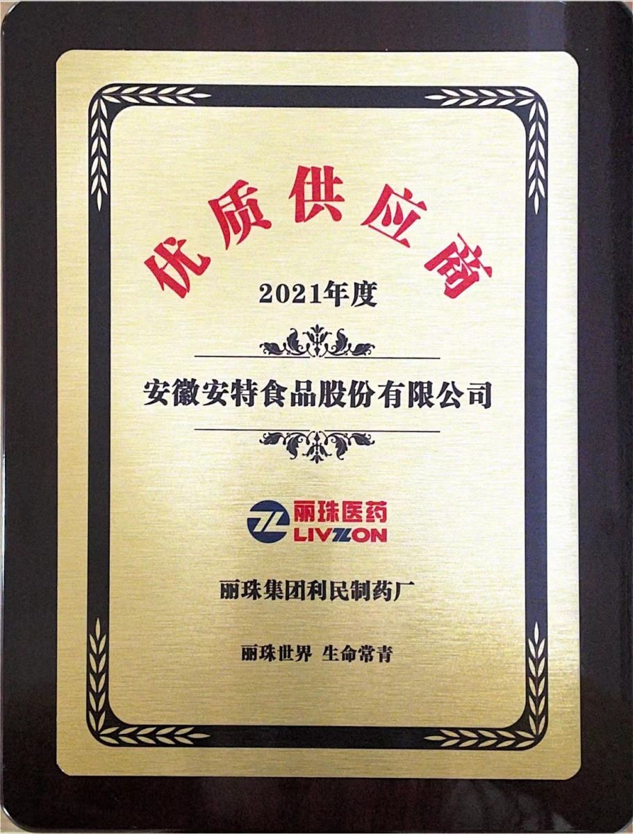 熱烈慶祝我司被麗珠集團利民制藥廠評為“2021年度優質供應商”