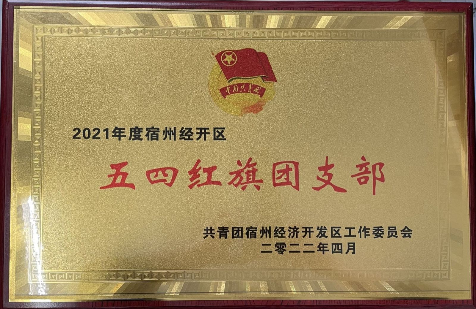 熱烈祝賀我公司被評為2021年度宿州經開區五四紅旗團支部