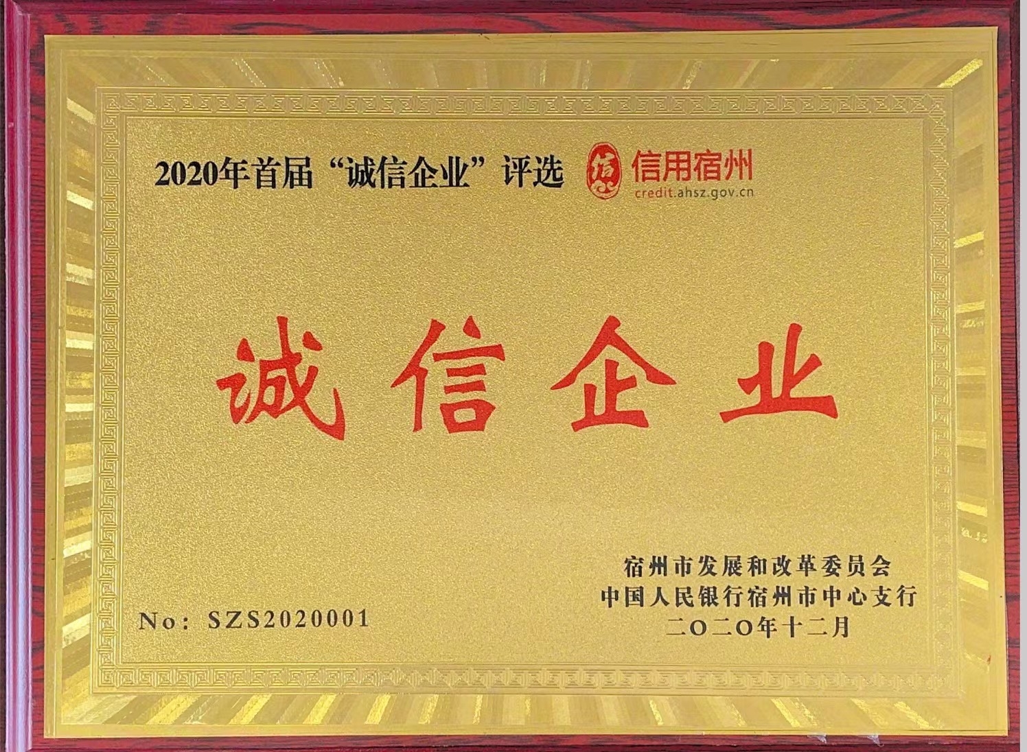 2022年6月21日,在宿州市信用協會工作推進會上,我司受邀參加“誠信企業”獎牌頒發儀式,獲得“宿州市誠信企業”榮譽。